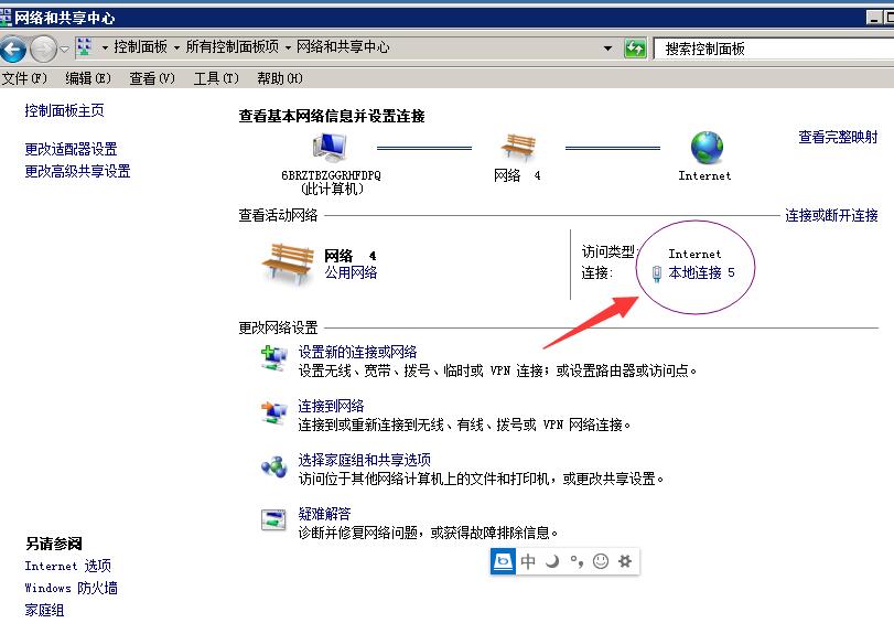 第一步:远程连接上云主机VPS,打开桌面“网络”,点击“网络和共享中心”,如下图所示: