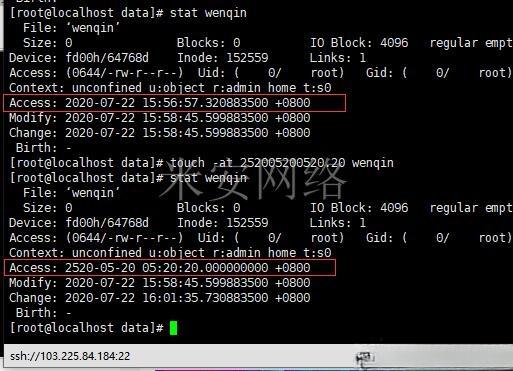 修改文件的access(访问)时间,如修改上图中的wenqin的access时间