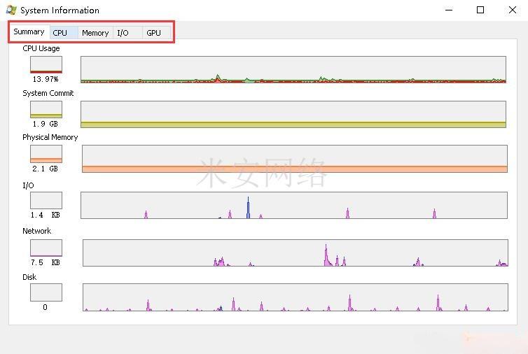 4.点击如图所示图标,对应信息为“System Information”,可以查看系统各项资源的总体信息